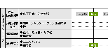 1.表中の取替え及び補修時期は、住宅金融公庫「住宅維持管理履歴簿」及び自社独自のメンテナンス計画に基づいて作成したもので、あくまでも目安です。